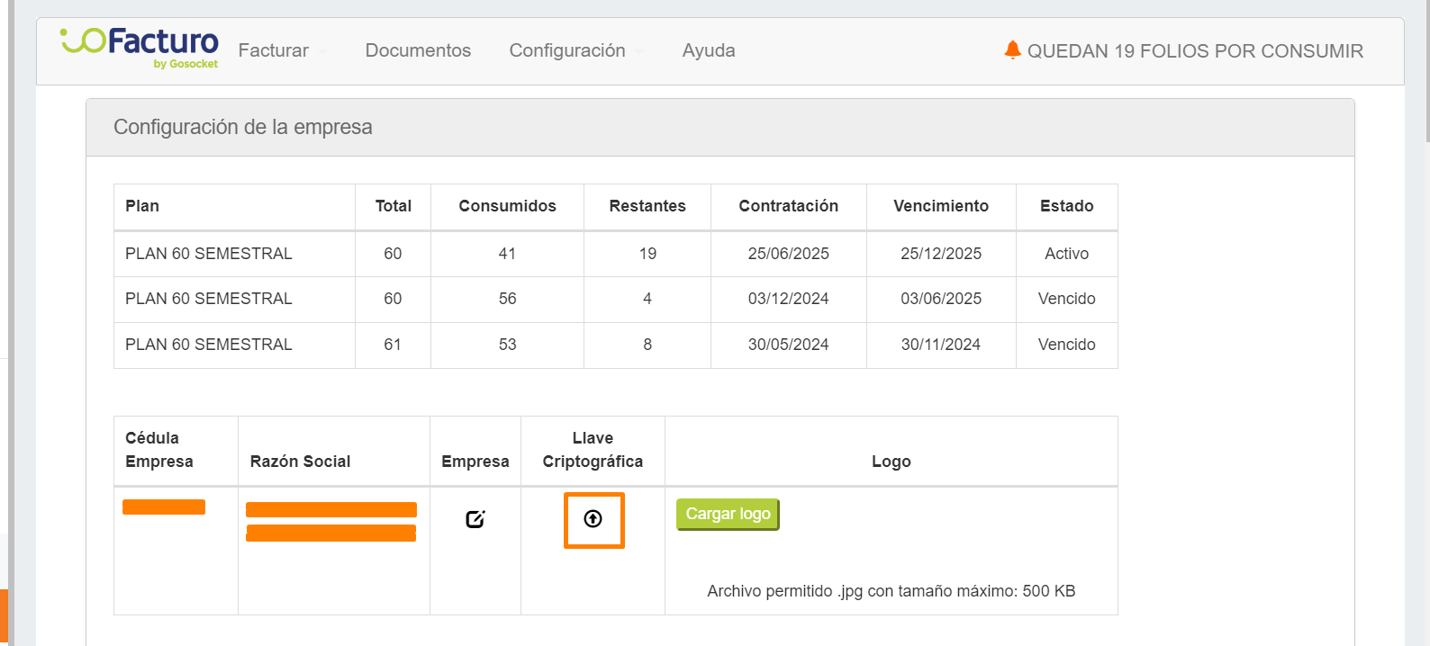 To update the cryptographic key associated with your electronic invoicing process through ioFacturo, please follow the steps detailed below: