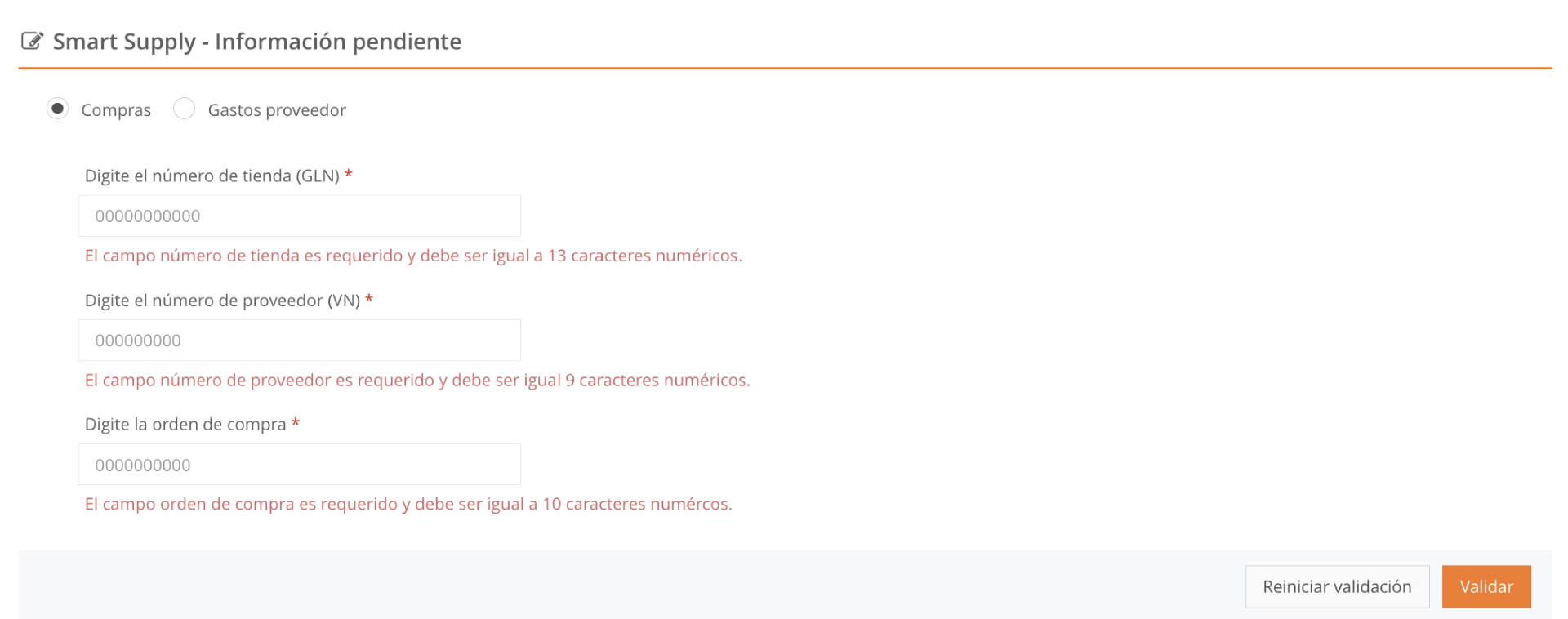 - Other Smart Supply–required fields