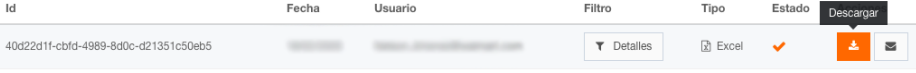 Once the report has been generated, it can be downloaded by clicking the Download (Descargar) button, where the file will appear identified by the username and timestamp.