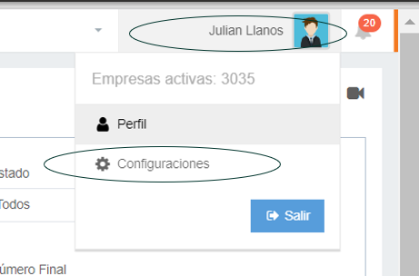 3. Click on the profile icon located in the upper‑right corner. A menu will be displayed; select the Settings (Configuraciones) option.
