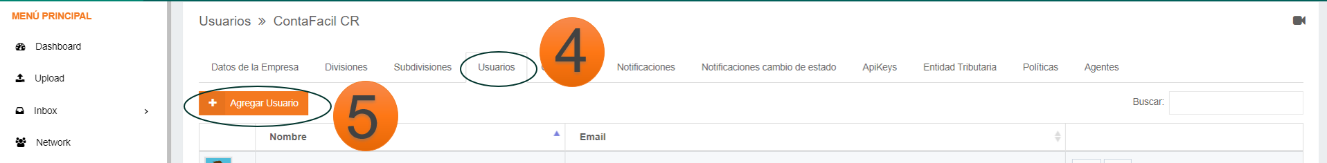 Note: Here you can add new users or modify existing ones so they can access the platform under your company’s ID.