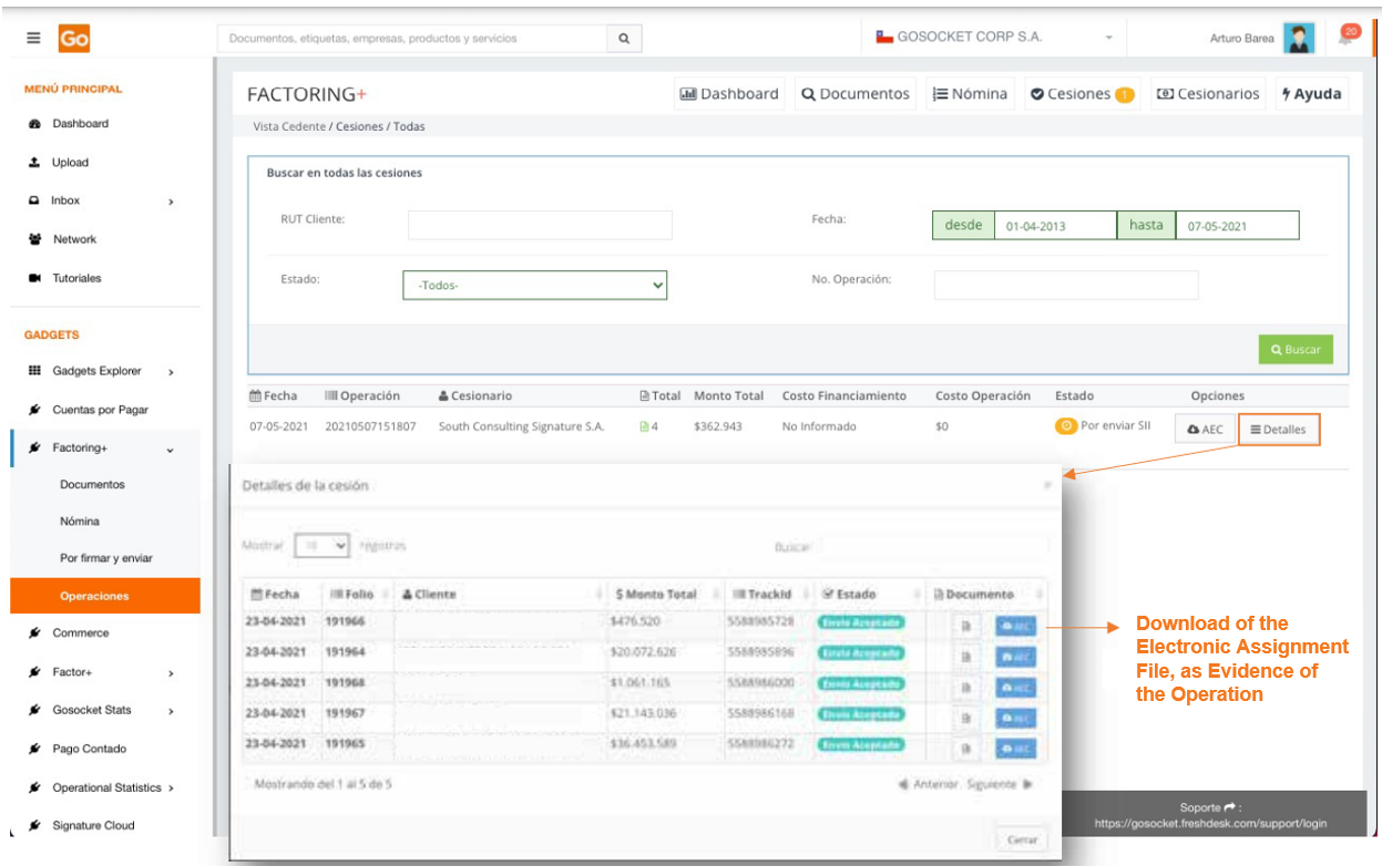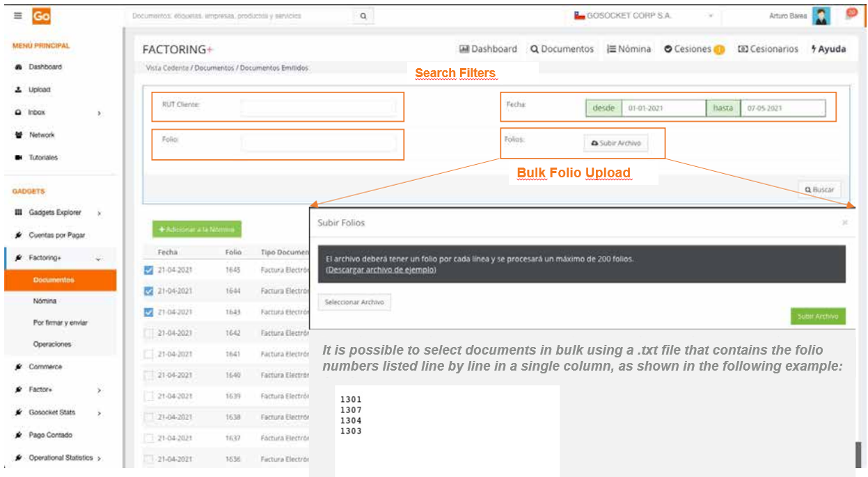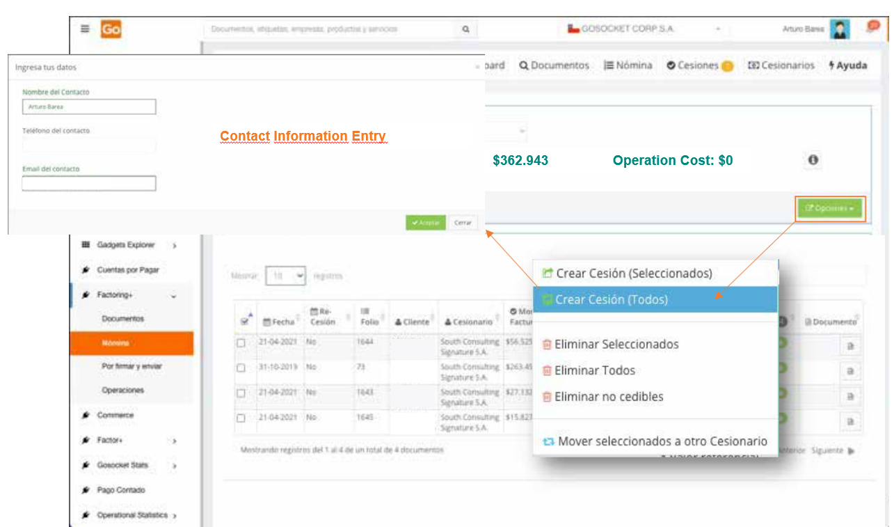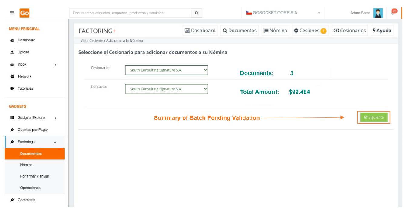 To use Factoring+, it is necessary to first install the application from the Gadget Explorer menu available on the Gosocket portal.