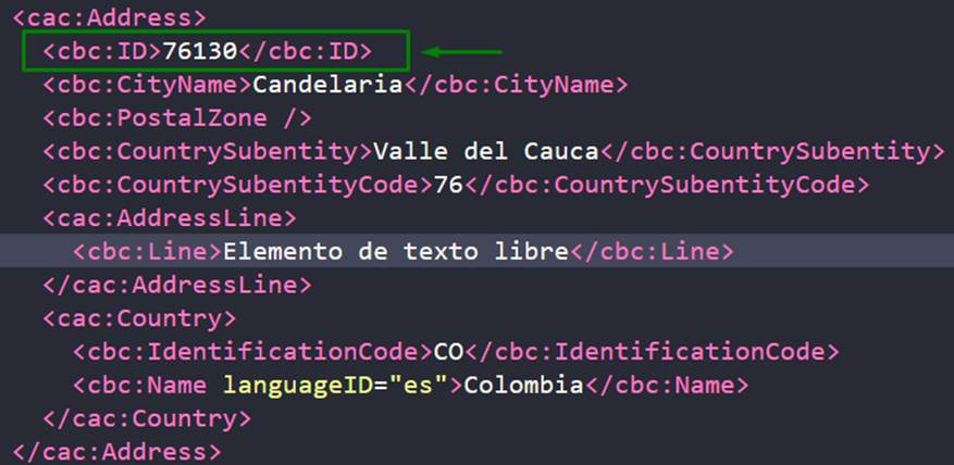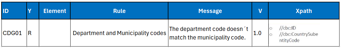 According to DIAN’s technical annex, the difference is found in the Xpath CountrySubentityCode.