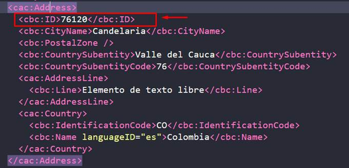 Upon reviewing the XML to validate the codes, it is observed that the code 76120 is being sent for the municipality of "Candelaria", corresponding to the department of "Valle del Cauca".
