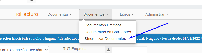 Access the module corresponding to Document - Document Synchronization (Documentos - Sincronizar Documentos), where you will find the option to manually register the invoice.
