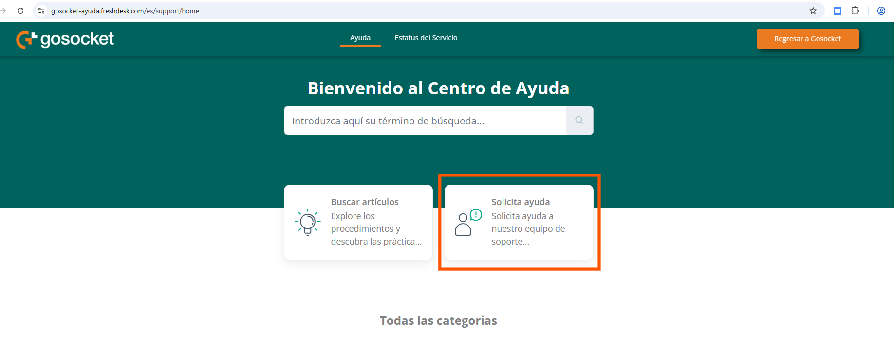 Puede abrir un Caso de Soporte por medio del formulario disponible en el Portal de Ayuda: https://gosocket-ayuda.freshdesk.com/es/support/tickets/new