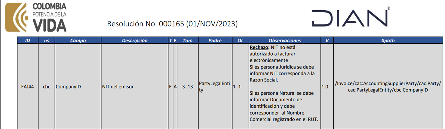 Un rechazo DIAN se presenta cuando alguna regla de validación del Anexo Técnico 1.9 no se cumple.